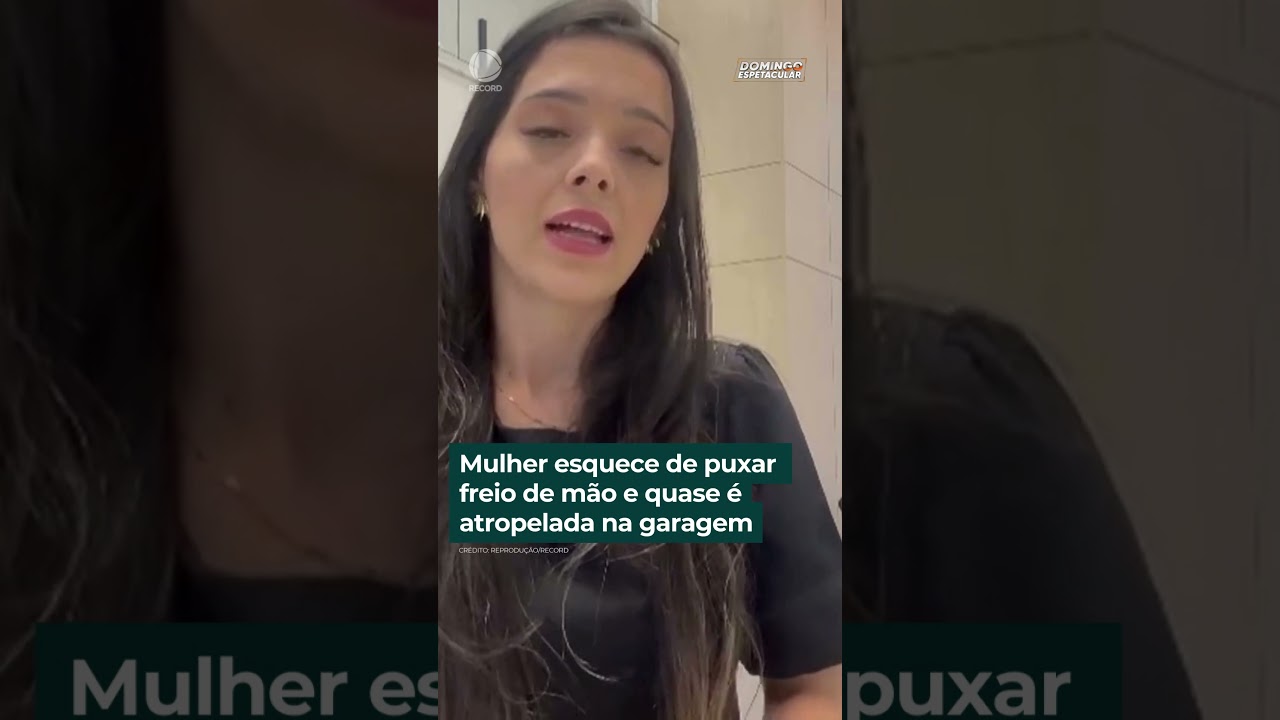 Mulher esquece de puxar freio de mão e quase é atropelada na garagem | #shorts #domingoespetacular