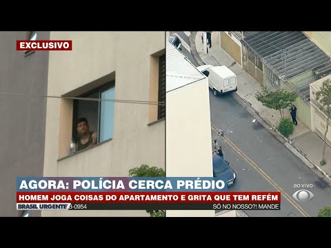 A equipe do Brasil Urgente acompanhou o caso de um homem que arremessou objetos para fora do apartamento e que gritava que tinha um refém. #BrasilUrgente