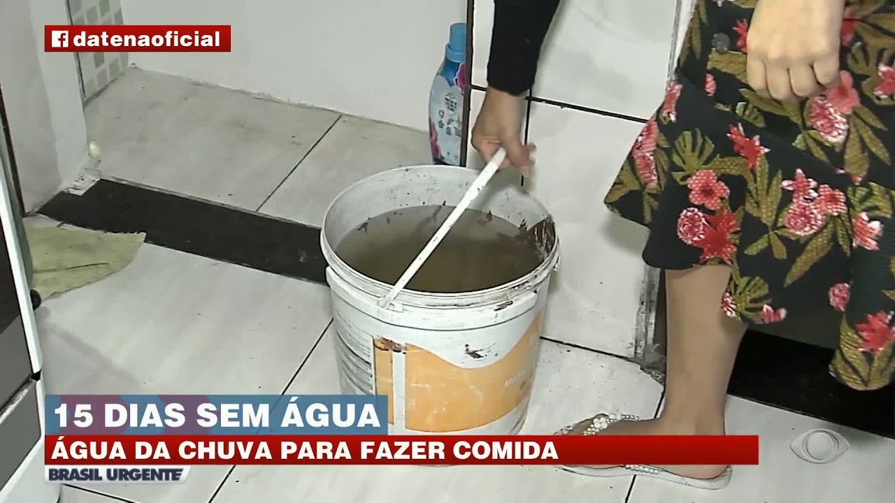 Famílias sofrem sem água há 15 dias e precisam da água da chuva para cozinhar e tomar banho.