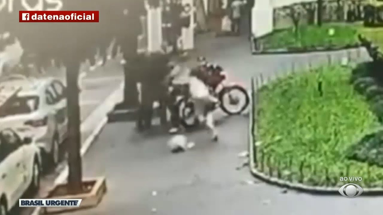 Vítima machucada em roubo era seguida pela dupla criminosa após sair de padaria. mais informações em www.band.com.br/brasilurgente #brasilurgente