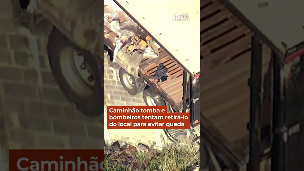 Caminhão tomba, atinge casas e bombeiros tentam retirá-lo para evitar queda #cidadealerta #shorts